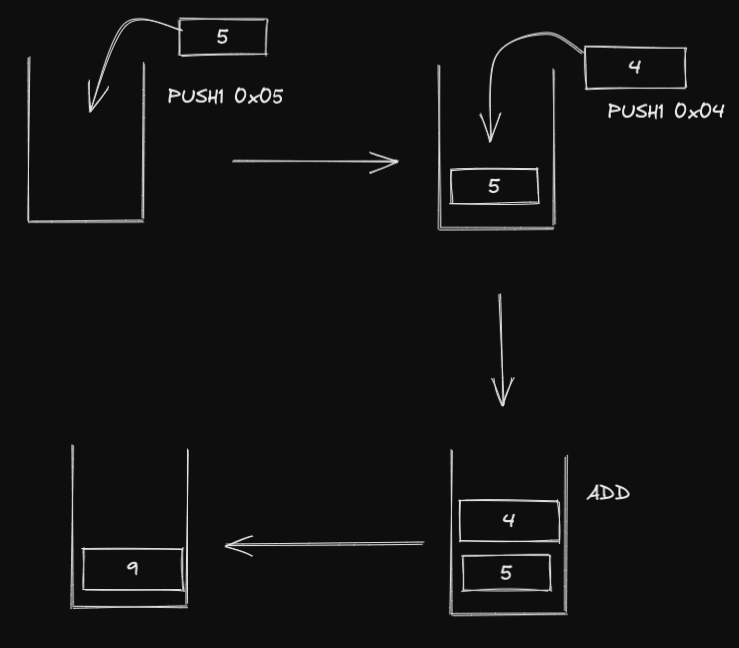 PUSH1 0x05, we push0x05on the stack, now it has 5 in the stack - With